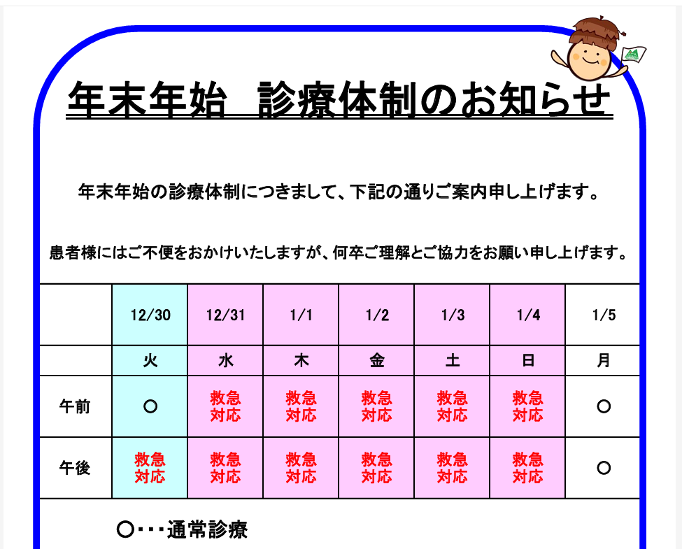 年末年始(12/30午後~1/3)