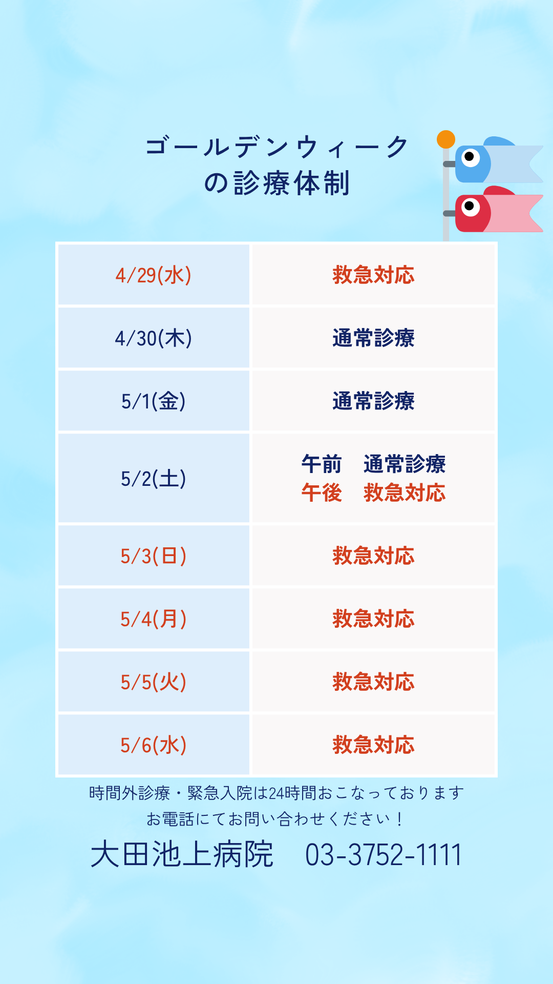 急病の際は、まずお電話でお問い合わせください