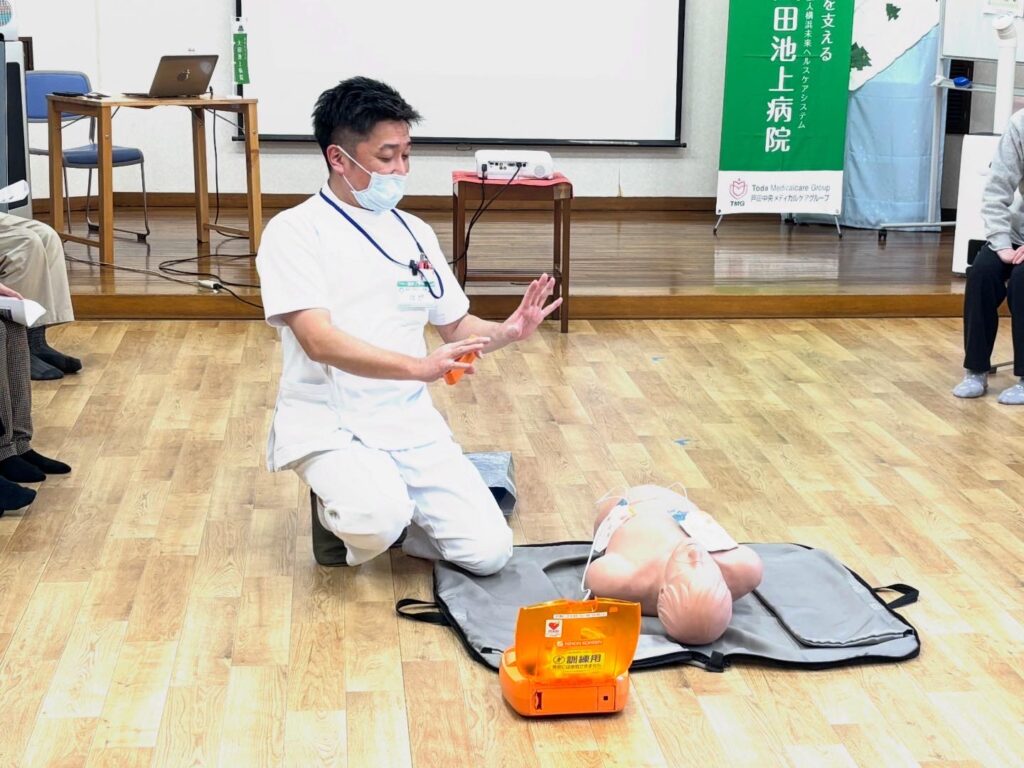 今回は、臨床工学科の芳賀講師が、「AEDの使い方と一次救命処置(心肺蘇生)」について講義と実技を行いました。