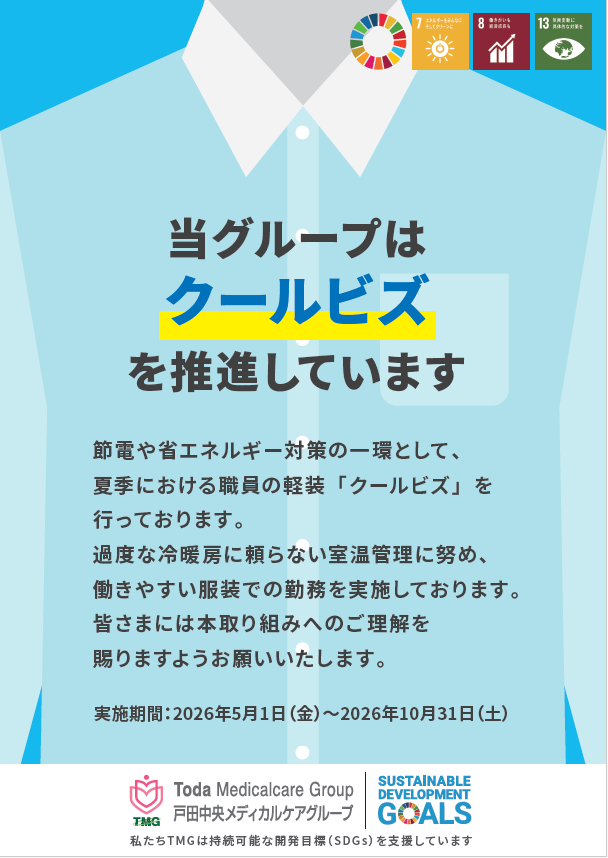 過度な冷暖房に頼らない室温管理に努め、働きやすい服装での勤務を実施しております。